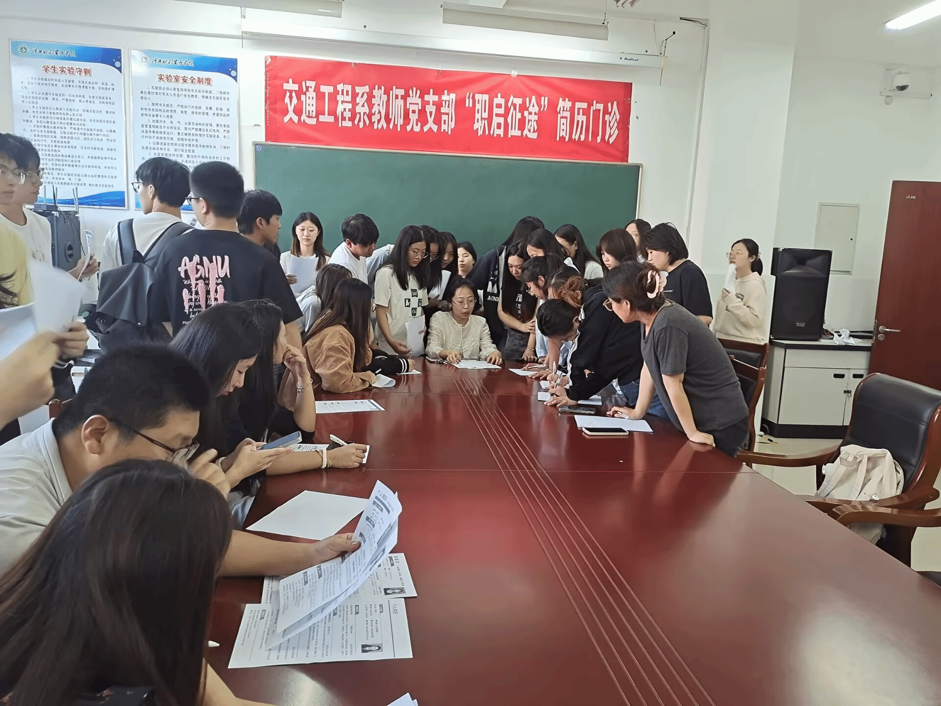 为深入落实2026届毕业生就业工作部署,切实提升应届毕业生的求职竞争力,9月25日下午,交通工程系教师党支部组织精心策划并成功举办了第二期“职启征途”简历门诊活动。活动吸引了近百名毕业生踊跃参与,现场气氛热烈。